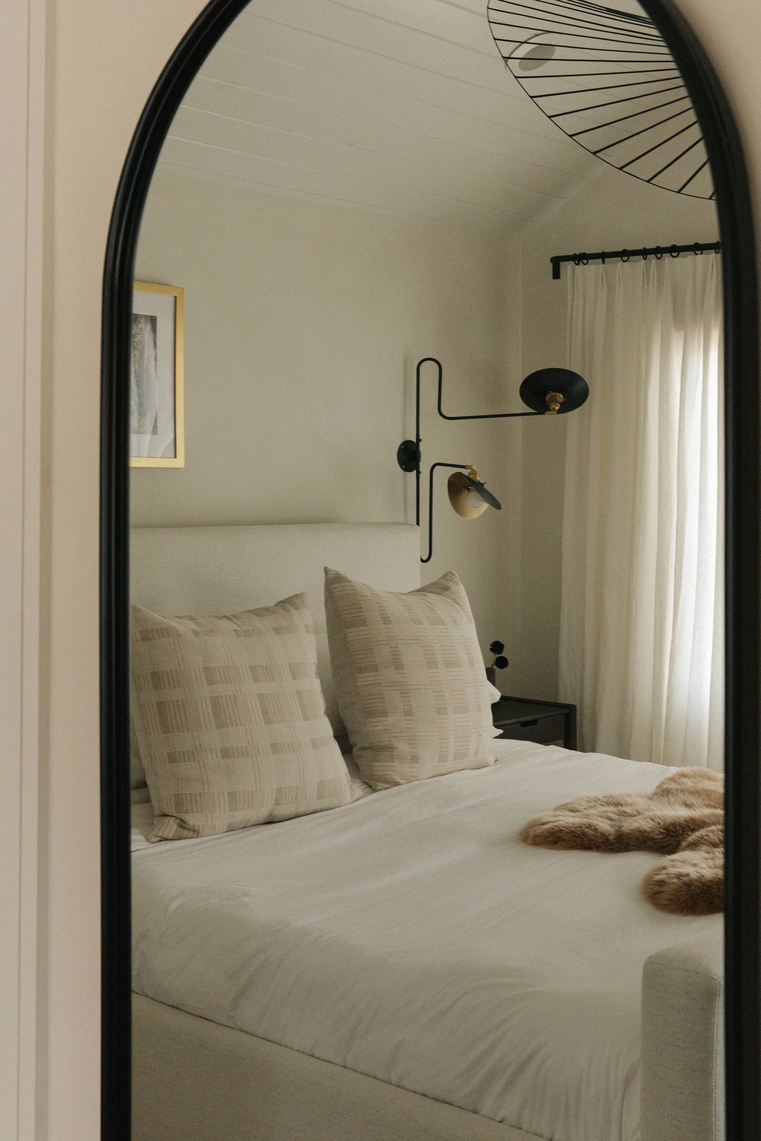 We elevated a home with a traditional farmhouse style into a modern living space with a California bungalow vibe. We remodeled the kitchen and added our eclectic spin with new finishes and furniture in the open living and dining space, primary bedroom suite, office and den.